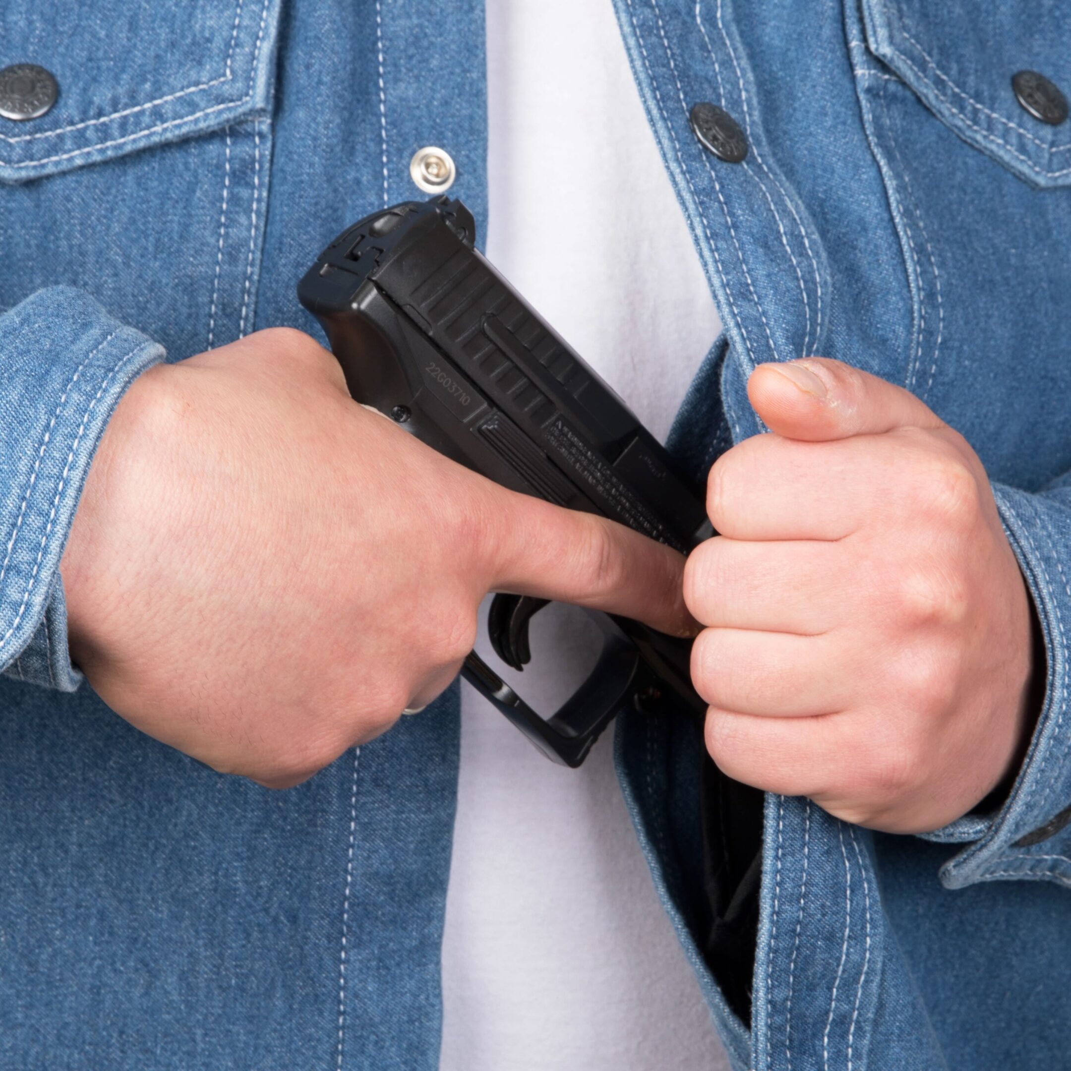 UNIVERSAL HOLSTER: Includes a universal holster that accommodates virtually any size handgun, from standard full size and compact to sub-compact and revolvers. The holster can be positioned at the ideal angle and depth in either the right or left-hand interior seam pockets. Also included is a removable Velcro pouch for two extra magazines.